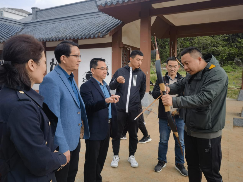 龚媛媛书记介绍了公司的基本情况,表示公司重视推广中国传统文化,其中“礼射”已成为公司的重点培育项目,射艺团队在各大赛事中屡获佳绩。王东副经理讲解了礼射文化的发展,带领大家走进射艺靶场,体验弓箭运动,感受博大精深的中国传统文化。讲解员韩老师详细地介绍徐州历史演变,汉文化的形成与发展,增进大家对徐州和汉文化的了解。座谈会上,两校领导就支部建设工作与项目进行交流。体育部商聪主任介绍了谈球吧的特色项目,翟澎副董事长对合作的项目提出建议和看法,王永臻董事长介绍了师大附中的办学情况。