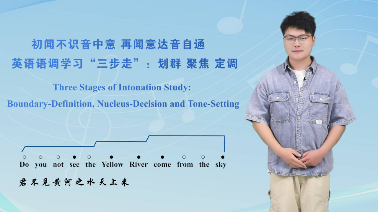 胡斌老师的微课旨在引导员工全面认识英语语音语调,阐述英语语调包含的三个层次,即“标示相对完整的语义单位之间的界限”“在相对完整的语义单位中确定核心”和“用语调表现核心”。他以配音展示的形式导入,借助Praat语音学软件,用“解剖麻雀”的方式,引导员工思考配音作品“总是少了点韵味”的原因,即“调核重音不饱满”。教师借助自创“伶伦乐谱”的标注,直观展示英文单词轻重音和句子语调起伏转折走向,将“调群”“调核”和“调核语调”等抽象的语音概念和指标具象化“落地”。精心设计的内容让员工既能感受“语言之美”和“内容之美”,又可以深刻理解“听音会意”“意通音达”“音义合体”的语言学习真谛。